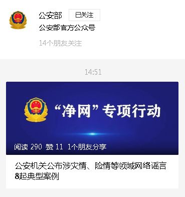 公安部组织全国公安机关持续开展打击整治网络谣言工作,重拳打击编造虚假灾情、险情等违法犯罪活动。6月26日,公安部公布8起涉灾情、险情网络谣言典型案例。